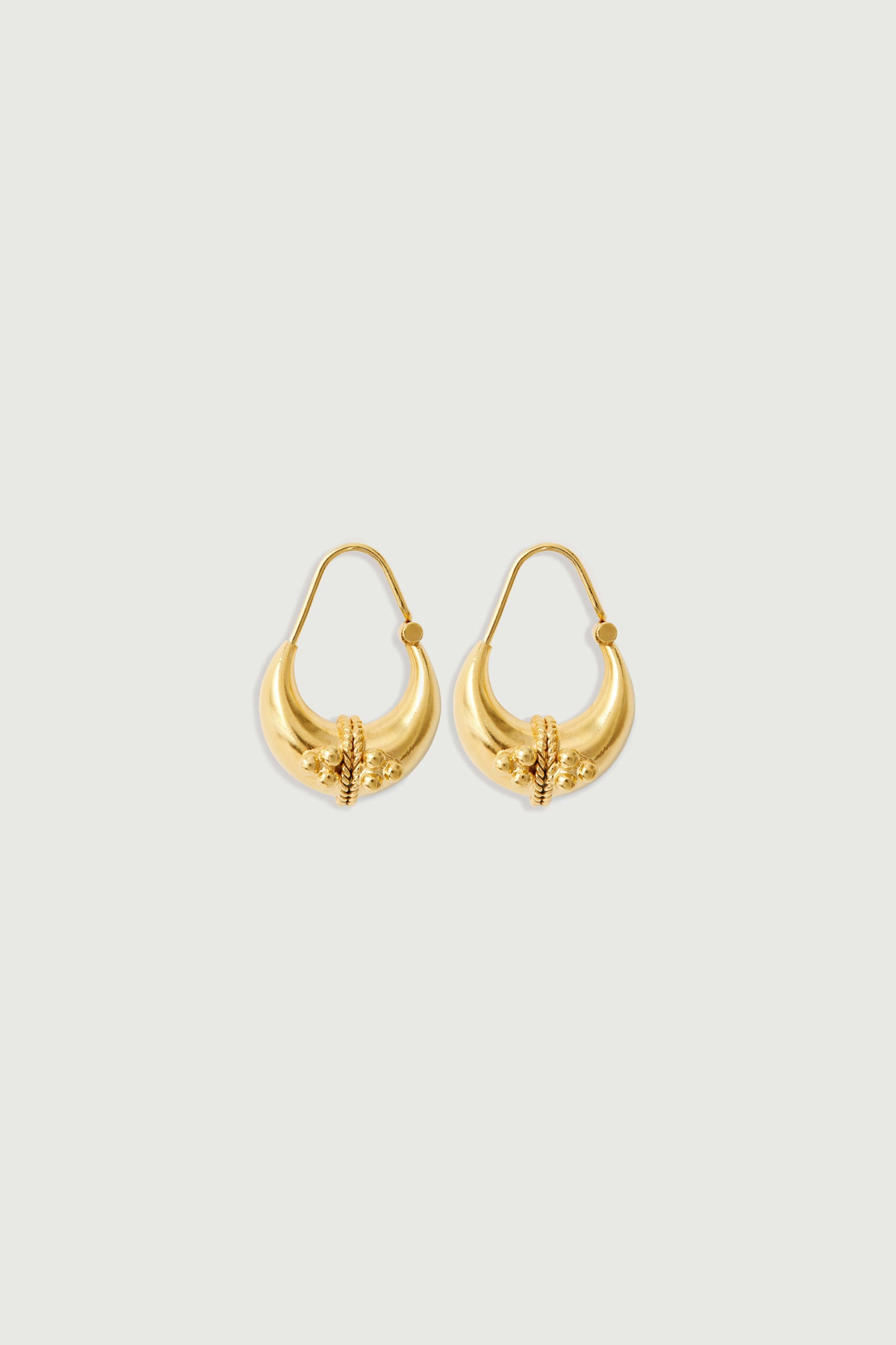 ZAGREB is a pair of curved earrings in vermeil, with an engraving in the centre. It can be matched with the ZELIE ring which has the same curved appearance.