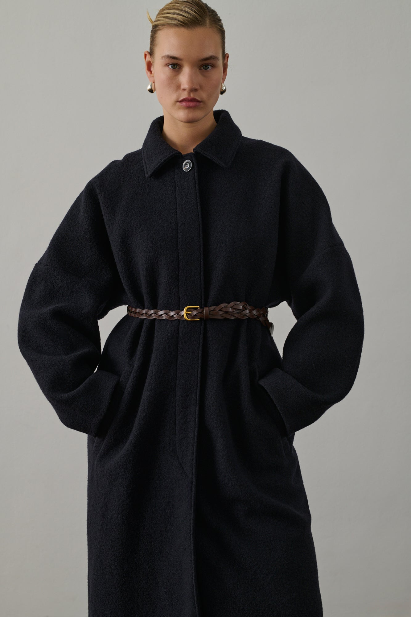 - Braided chocolate leather Belt