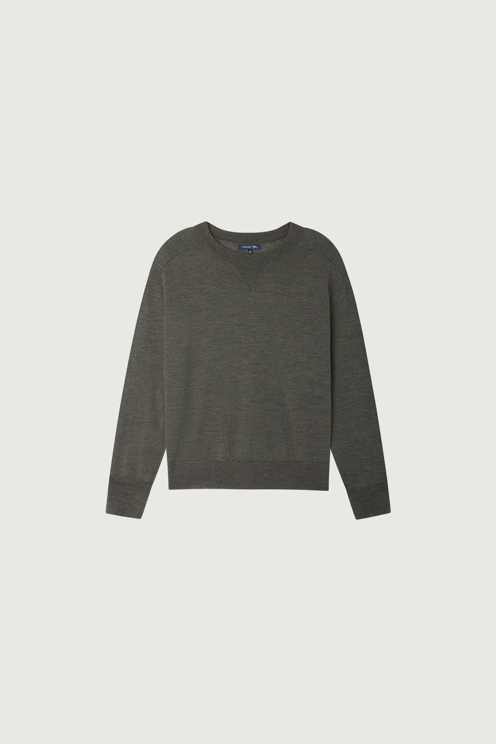 ACE is a long-sleeved jumper with a straight and loose fit. Knitted from fine and soft merino wool, it can be worn next to the skin or layered. A timeless piece from our collections, it is available this winter in a dark khaki shade.