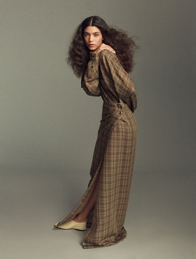 Mia is 1m75 (5'7) tall and wears a size 38.